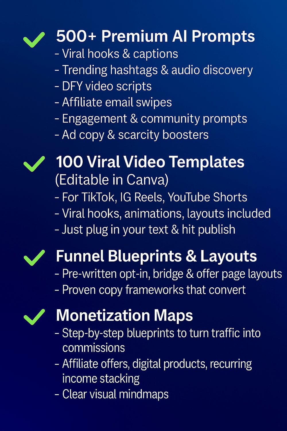 The real strength of Viral Cash Machine 2025 lies in its AI-powered features that make traffic generation and monetization easier than ever. Here’s what you get inside: