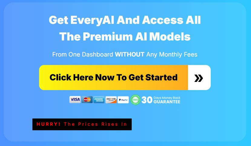 One of the biggest advantages of EveryAI is its affordable one-time pricing model. Unlike most AI platforms that charge $30–$97 per month per tool, EveryAI gives you access to 350+ premium AI models for a single low payment.