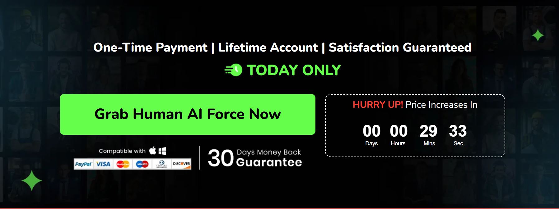 Human AI Force is structured with a low one-time entry price and optional OTO upgrades (one-time offers) that unlock more advanced features, scalability, and profit opportunities. Here’s a breakdown: