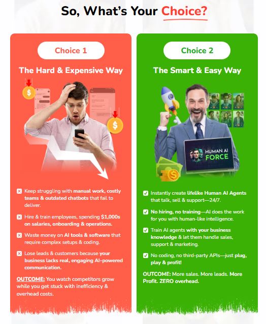 In essence: Human AI Force works by turning a few clicks and uploads into a fully trained, 24/7 AI workforce that sells, supports, and grows your business automatically.