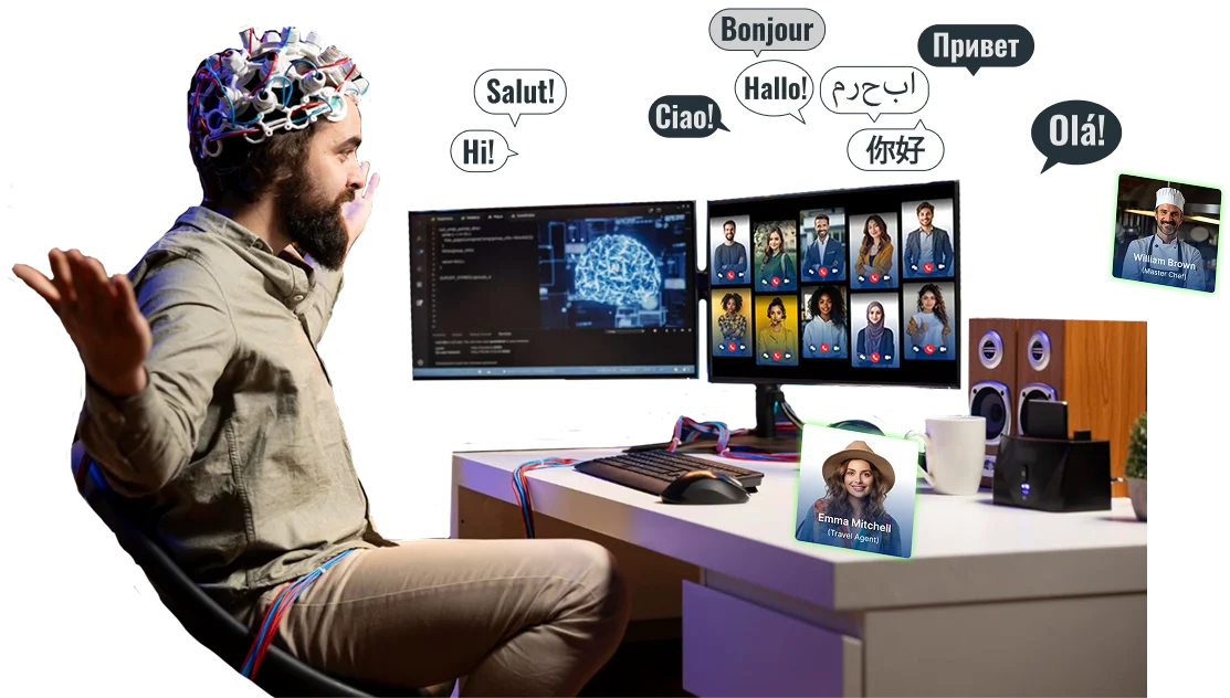 Personalize your AI with custom names, voices, languages, and visual avatars.
