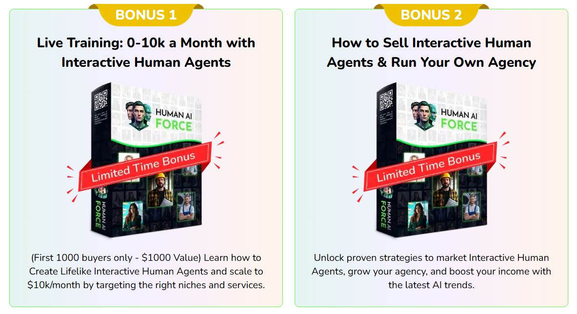 While the front-end package is strong, Human AI Force also provides optional upgrades for those who want to scale their content creation or agency services. Here’s what they typically include: