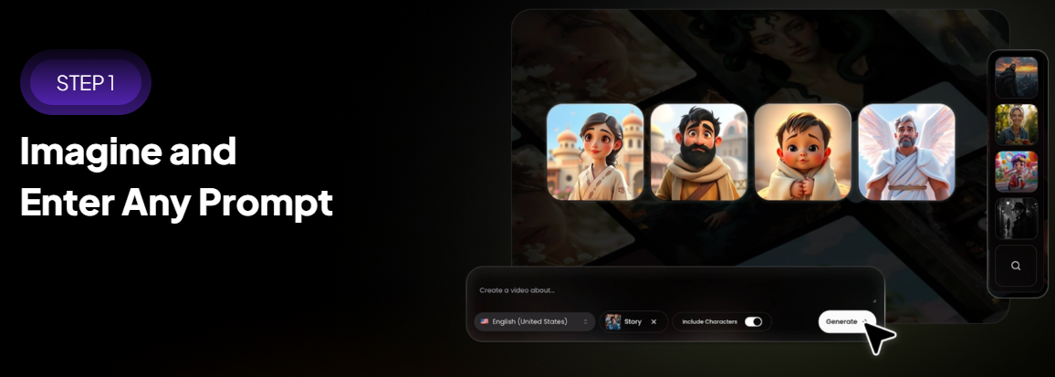 • AI Characters & Storytelling – Create animated characters and storytelling scenes that make your videos more engaging.