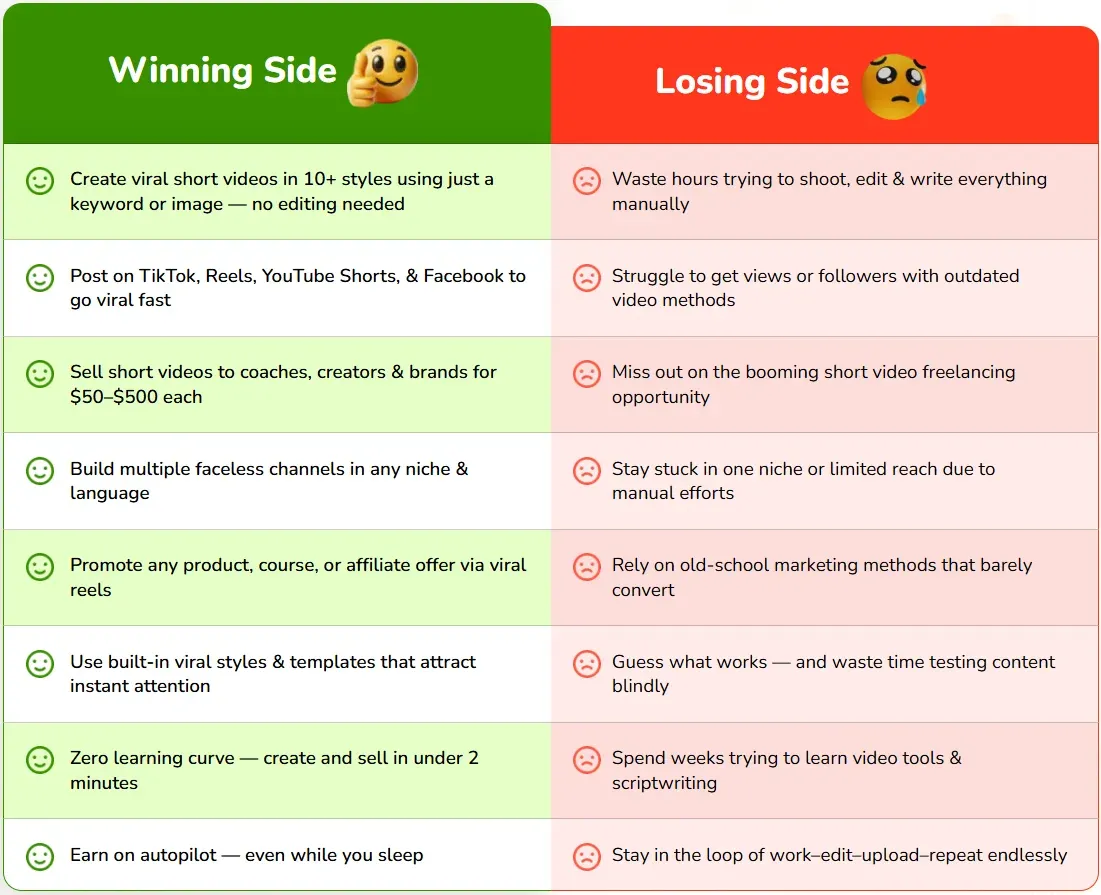 ⚖️ Final Note: The pros far outweigh the cons, especially if your main goal is to produce consistent, engaging short-form content quickly and without hassle.