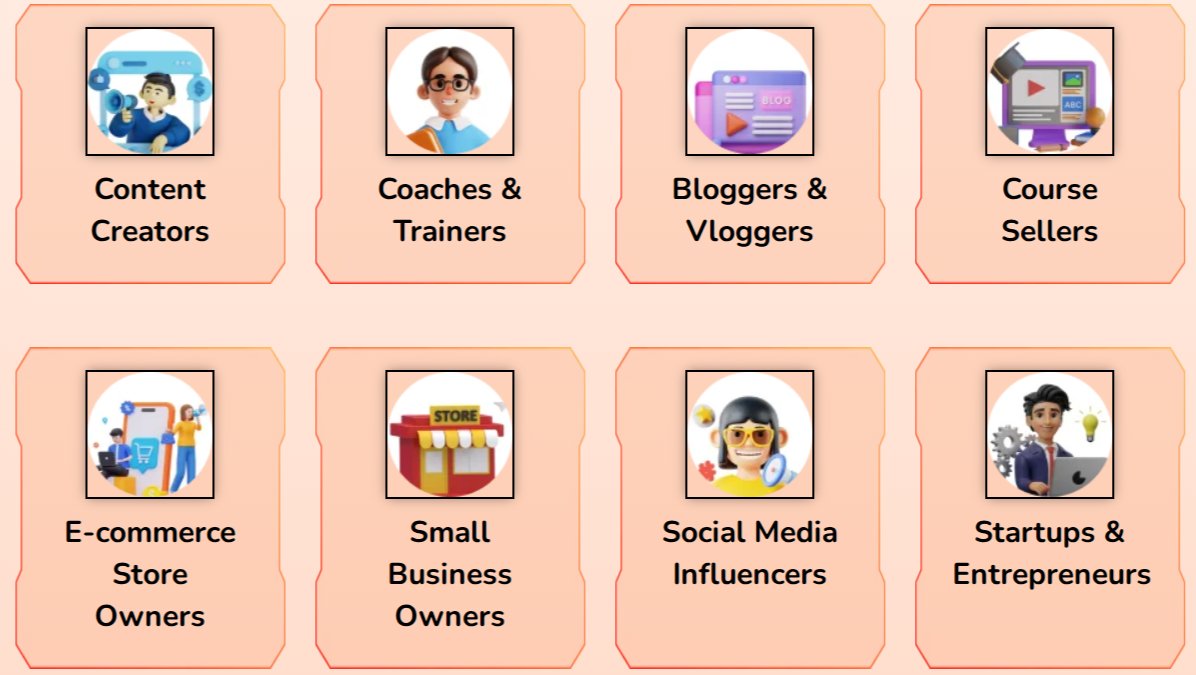 Works for Any Niche – Whether it’s affiliate marketing, ecommerce, coaching, or entertainment, the platform adapts to your needs.